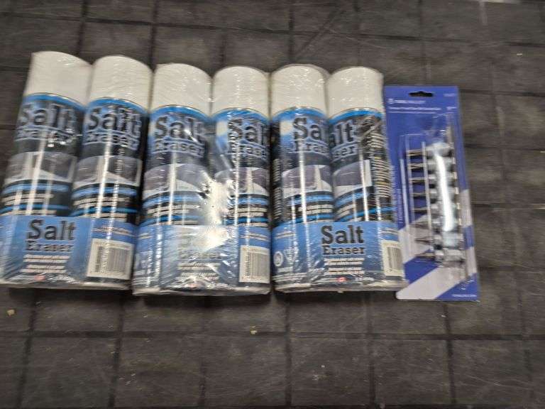 3 Packages of 2 Cans each of Salt Eraser, 1 Package of Tamper Proof Star Bit Sockets.